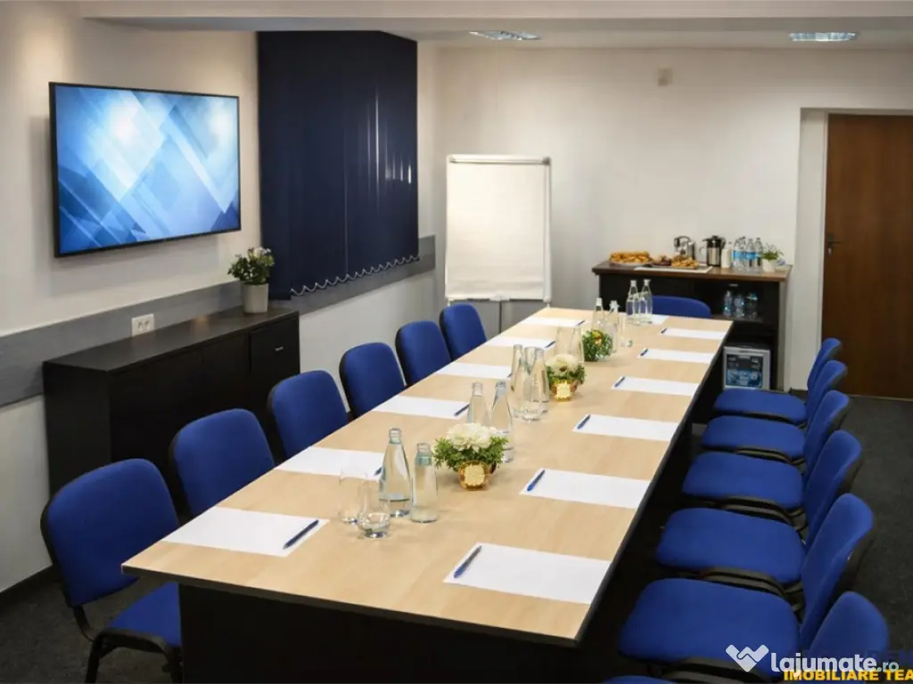 La demisol sunt depozite, vestiare, sala de conferinte, toalete.