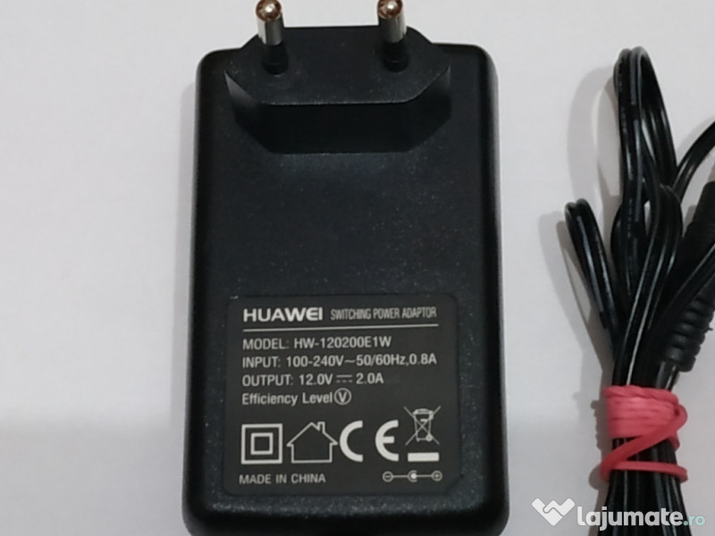 Firmă. : huawei Model. : HW120200E1W Input. : 100-240 50/60hz ,0,8 A Output. : 12,0V- 2A