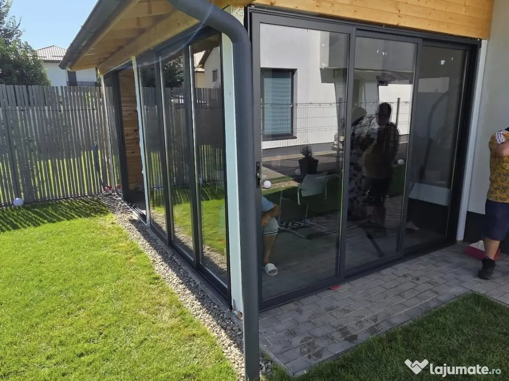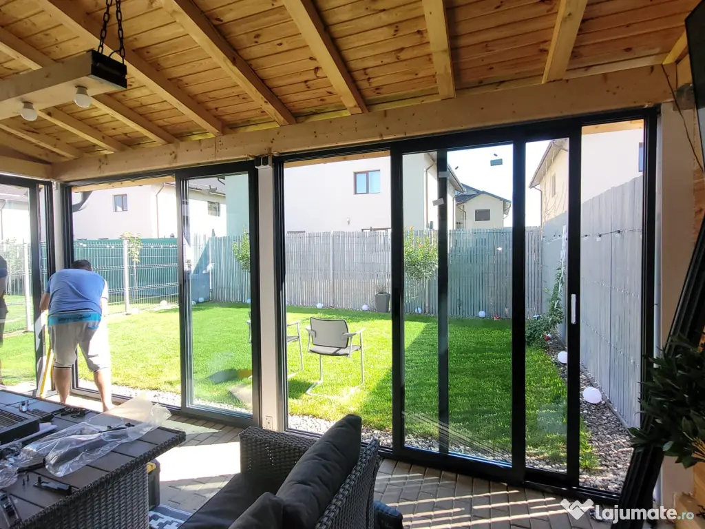 Executăm închideri de terase cu sisteme glisante din aluminiu (fără barieră termică) + geam termopan, la prețuri corecte și montaj rapid.