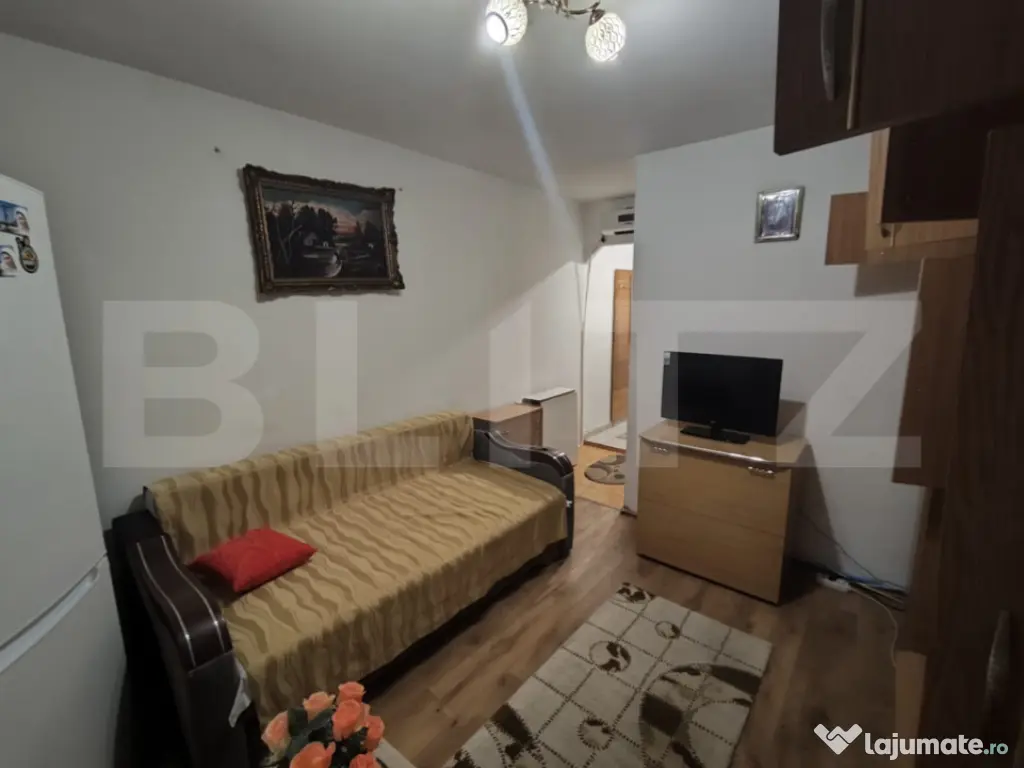 Se oferă spre închiriere un apartament cu o cameră, situat într-o zonă liniștită, ideal pentru o persoană sau un cuplu care caută confort și intimitate. Locuința este complet mobilată și utilată, fiind pregătită pentru mutare imediată. Dispune de un spațiu bine organizat, luminos și primitor, oferind toate condițiile necesare pentru un trai confortabil. Zona este una calmă, ferită de zgomot, dar cu acces rapid către magazine, mijloace de transport și alte facilități esențiale. Un apartament perfect pentru cei care își doresc liniște și comoditate, fără griji suplimentare. Cod ofertă / ID BLITZ: P169783 Id intern: P169783 Confort: 1 Tip imobil: Bloc de apartamente Număr Băi: 1