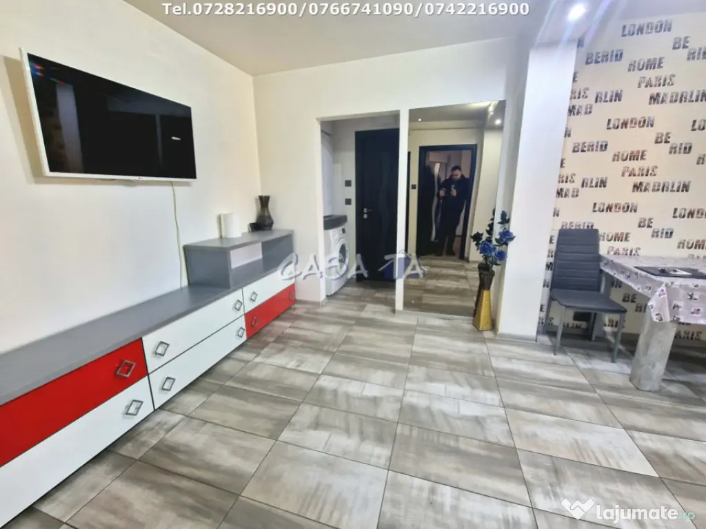 **Apartament cu 2 camere de închiriat în Târgu Jiu - Bld Ecaterina Teodoroiu** Agentia imobiliara CASA TA oferă spre închiriere un apartament cu 2 camere decomandat, cu o suprafață de 55 mp, situat la etajul 1 al unui imobil cu 4 etaje. Acest apartament cu 2 camere este ideal pentru cei care caută confort și accesibilitate. Proprietatea a fost recent renovată și dispune de un balcon închis cu geamuri termopan, oferind un spațiu suplimentar pentru relaxare. Este complet mobilat și dotat cu electrocasnice moderne, inclusiv frigider, aragaz, mașină de spălat și televizor. Iar centrala termică asigură o încălzire eficientă. Apartamentul beneficiază de utilități complete: apă curentă, gaze, curent electric, canalizare, precum și acces la internet și televiziune prin cablu.Locația este excelentă, în apropiere de școli, grădinițe, parc, farmacii, centre comerciale, restaurante, sală de sport și transport public. Prețul este de 350 EURO pe lună, plus o lună garanție. Pentru mai multe detalii, contactați-l pe Alex la numerele 0728216900 sau 0742216900. Id intern: P1887 Confort: 1 Tip imobil: Bloc de apartamente Număr Băi: 1 Comision cumpărător: 0%