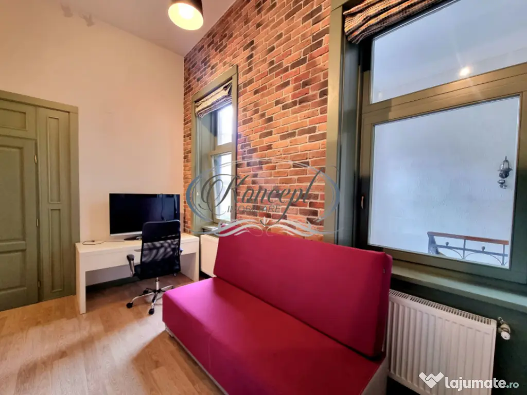 Koncept Imobiliare propune spre inchiriere un apartament situat in zona Ultracentrala a Clujului, intr-o cladire istorica cu acces facil la Central Shopping Center, universitati, restaurante, cafenele, farmacii, banci si mijloace de transport in comun. Proprietatea se afla la etajul 1, intr-o curte comuna bine intretinuta, asigurand un plus de liniste si intimitate in inima orasului. Cu o suprafata utila de 65 mp, apartamentul este compartimentat decomandat si ofera doua dormitoare generoase, o bucatarie separata, un hol cu debara si o baie spatioasa. Cele doua dressing-uri si spatiile multiple de depozitare integreaza functionalitatea necesara unui stil de viata urban. Interiorul este finisat in stil urban vintage, accentuat de tavanele inalte ce sporesc senzatia de spatiu si permit un acces facil la zonele de dormit. Apartamentul este complet mobilat si dotat cu centrala termica proprie si calorifere, oferind confort si eficienta energetica pe tot parcursul anului. Datorita amplasamentului si compartimentarii, locuinta reprezinta o alegere excelenta pentru familii, cupluri sau studenti care isi doresc proximitate fata de zonele de interes si un spatiu bine organizat. Pentru informatii complete, programarea unei vizionari sau pentru a afla oferta noastra completa va stam la dispozitie telefonic, prin e-mail sau la sediul agentiei noastre, pe str. Aviator Badescu, nr. 19, Cluj-Napoca. Id intern: P20772 Confort: 1 Tip imobil: Bloc de apartamente Număr Băi: 1