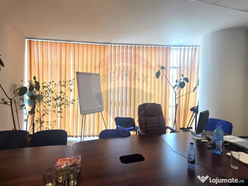 Dacă sunteți în căutarea unui sediu în Brașov, vă propunem un spațiu de birouri situat pe Bulevardul Vlahuță, în cunoscuta clădire Green Center. Veți beneficia de o poziționare excelentă, care vă oferă vizibilitate și un acces simplu pentru toți colaboratorii voștri. Compartimentare și finisaje interioare Aveți la dispoziție o suprafață utilă de 63,5 mp, la care se adaugă separat grupul sanitar, asigurându-vă astfel tot spațiul necesar pentru lucru. Interiorul este deja compartimentat într-o zonă open-space și o sală de protocol, fiind gata să vă găzduiască echipa. Biroul este dotat cu parchet laminat, tavan fals și uși de interior, oferind un aspect curat și profesional. Accesul către spațiu se face din holul comun al clădirii, care dispune de două lifturi și scară interioară. Facilități și controlul costurilor Pentru un confort sporit, veți avea propria centrală termică și contorizare individuală pentru toate utilitățile consumate. Acest aspect vă permite să aveți un control precis asupra cheltuielilor lunare de întreținere ale biroului. Un mare avantaj pentru activitatea voastră este accesul non-stop în clădire, oferindu-vă libertatea de a vă organiza programul exact așa cum doriți. Indiferent de ora la care alegeți să lucrați, spațiul vă stă la dispoziție fără restricții. Locație și beneficii în zonă Veți fi localizați într-o zonă foarte activă din Brașov, având la doar câțiva pași Carrefour, Mega Image și numeroase farmacii sau cabinete medicale. În pauzele de masă sau după program, aveți acces rapid la săli de fitness, stații de autobuz și diverse servicii. Pentru clienții care vă vizitează cu mașina, există opțiunea parcărilor publice din proximitate, ceea ce facilitează interacțiunile profesionale. Locația este perfectă pentru cursuri, consultanță sau orice tip de activități de birou. Detalii contractuale: chirie: 470 euro + TVA lunar. Suprafaţă totală: 64 m² An finalizare construcție: 2005 Stadiu construcţie: Finalizat Număr încăperi: 2 Posibilitate parcare: Nu Tip imobil: Clădire de birouri