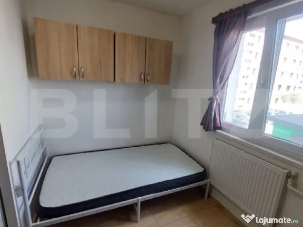 Blitz ofera spre inchiriere o cameră de cămin modernă, ideală pentru o persoană care își dorește confort, liniște și acces facil la toate punctele de interes din zonă. Camera este dotată cu baie proprie și o chicinetă elegantă, perfectă pentru pregătirea meselor rapide. Este complet utilată cu TV, mașină de spălat rufe, frigider și plită electrică. Spațiul este bine întreținut și potrivit pentru cineva care își dorește o locuință curată și practică. Zona este excelentă, având în apropiere stații de transport în comun, magazine, grădinițe, școli , piata Astra și centrul comercial AFI Mall, ceea ce face deplasările și cumpărăturile foarte ușor de realizat. Întreținerea este foarte mică, iar încălzirea se face prin sisitemul de termoficare( CET) ,chiar și în cea mai rece iarnă factura se situează în jurul sumei de 100 lei, ceea ce reprezintă un avantaj important. Camera se închiriază pe termen lung, cu o garanție de 190 de euro care se pierde în cazul rezilierii contractului înainte de termen. Se caută un chiriaș responsabil, care să aibă grijă de locuință și să rămână cel puțin un an. Vă aștept cu drag la vizionare! Cod ofertă / ID BLITZ: P158969 Id intern: P158969 Confort: 1 Tip imobil: Bloc de apartamente