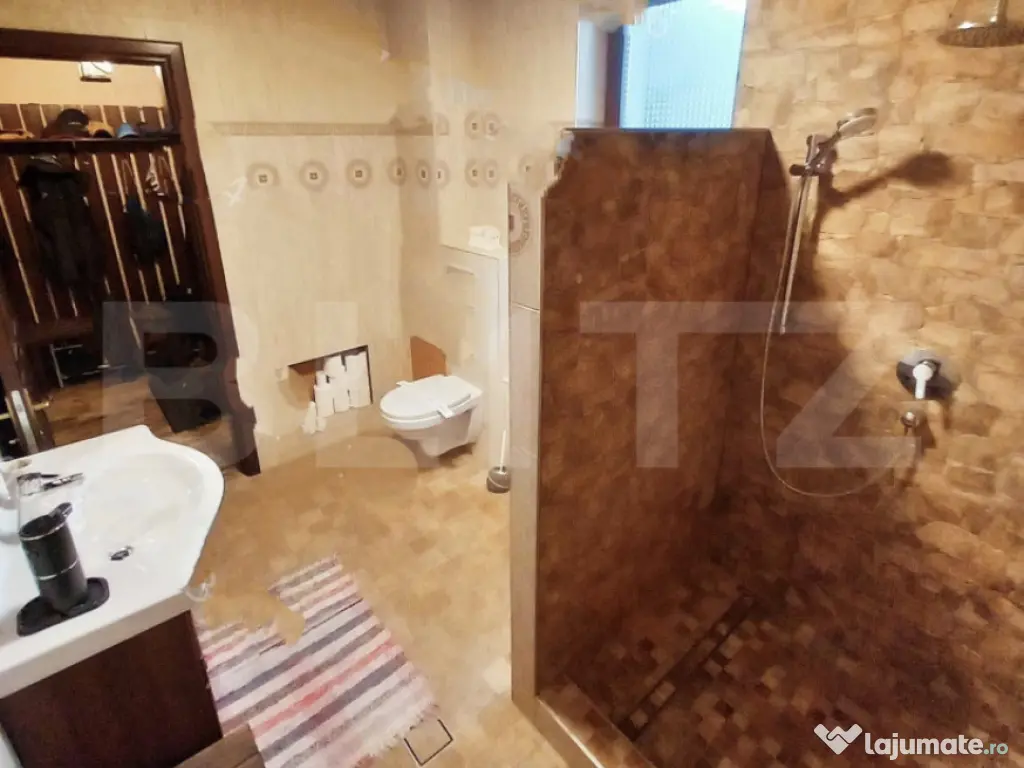 Casă spațioasă de închiriat în Bod – 6 camere, – 800€/lună Oferim spre închiriere o casă spațioasă și modernă, ideală pentru o familie care își dorește confort, liniște și mult spațiu, situată în localitatea Bod, într-o zonă liniștită. ???? Caracteristici principale: Suprafață utilă: 178 mp Regim de înălțime: P+1 + pod amenajat 6 camere, compartimentare practică 2 băi Living open-space cu bucătărie Balcon Terasă acoperită de 43,5 mp 6 locuri de parcare ???? Compartimentare: Parter: 1 dormitor baie living + bucătărie open-space cameră tehnică hol casa scării Etaj: 3 dormitoare birou (poate fi transformat în al 4-lea dormitor) baie hol Pod: izolat, cu geamuri termopan și parchet laminat ???? Curte amenajată: magazie șură 2 țarcuri pentru animale grădină de legume pomi fructiferi Casa este construită din cărămidă, are finisaje moderne, toate actele sunt în regulă și este gata de mutare. Cod ofertă / ID BLITZ: P164239 Id intern: P164239 Număr niveluri imobil: 1 Număr Băi: 2 Nr. locuri parcare: 5-10 Curent Apă Canalizare Gaz