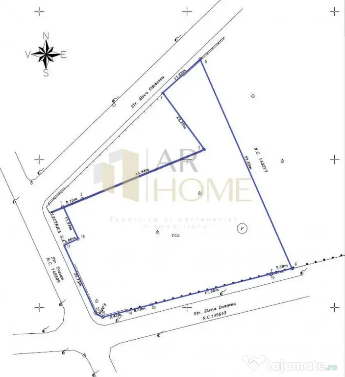 Are o suprafata de 3261 mp, deschidere la 3 strazi, avand ca vecinatati scoala, biserica, intersectie circulata, mijloc de transport in comun etc.