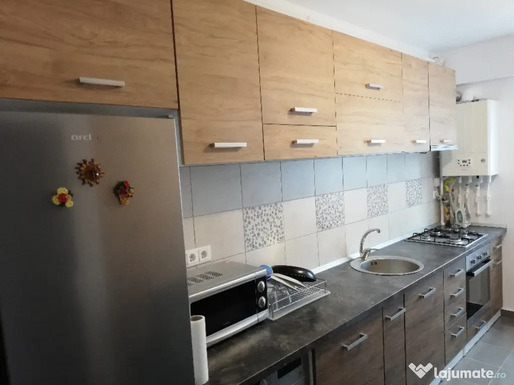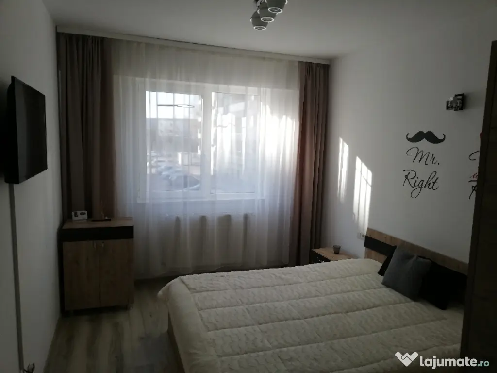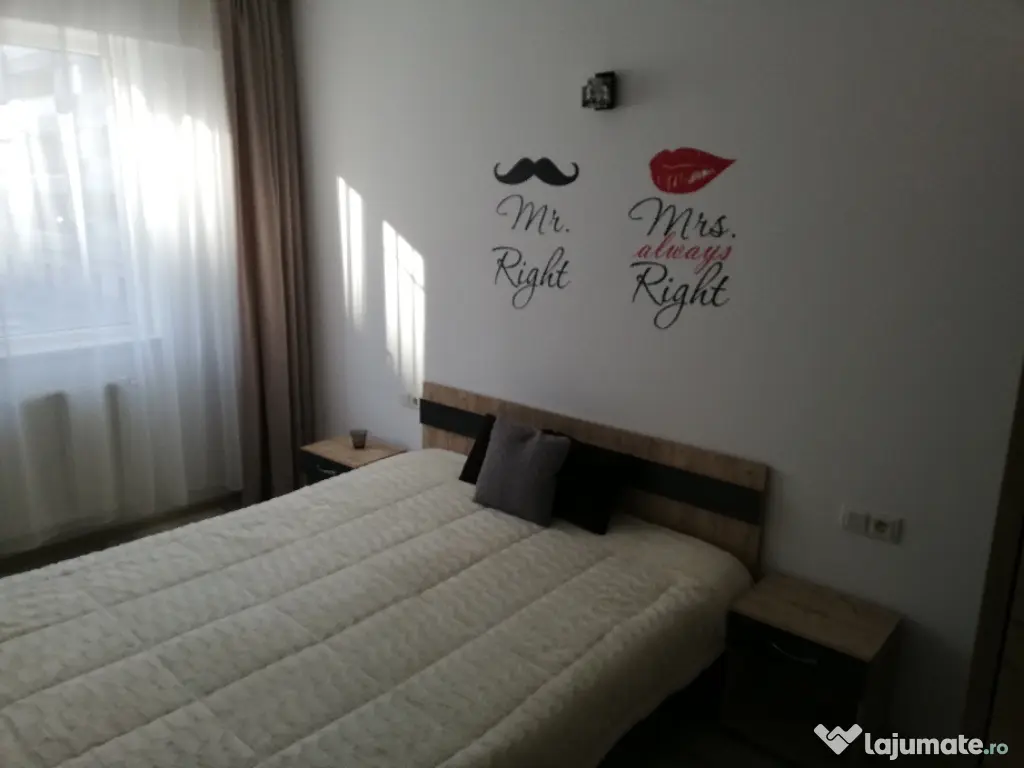 -apartamentul este amenajat, mobilat si utilat complet(2 tv,frigider,masina spalat,plita,cuptor,hota,microunde, etc);