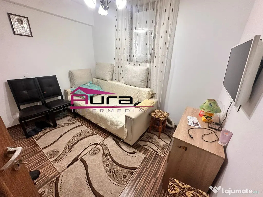 Agentia Imobiliara Aura Intermediar inchiriaza apartament 2 camere situat la etajul 1 al unuii imobil cu 2 nivele zona Big,suprafata totala 70 mp,centrala gaz,mobilat utilat complet,imobilul este compus din living,1 dormitoar,bucatarie,hol,baie si terasa deschisa.Chiriasul va beneficia de parcare auto situata in interiorul curtii unde se afla un foisor plus barbeque pentru momente de relaxare,pret 400 euro plus o luna garantie,tel.0747698898 Confort: 1 Tip imobil: Casă/Vilă