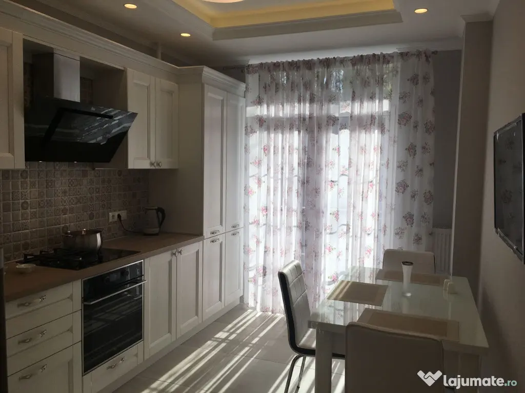 Ofer spre închiriere apartament 2 camere, decomandat .Apartamentul este la prima inchiriere si se afla la etajul 5/5. Apartamentul este complet utilat și mobilat , electrocasnice (mașină de spălat rufe cu uscător, mașină de spălat vase, combina frigorifica, plita , cuptor, hota), aer condiționat, internet+TV prin fibra.Incalzirea este realizata de catre centrala proprie a apartamentului Confort: 1 Tip imobil: Bloc de apartamente