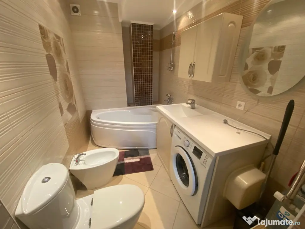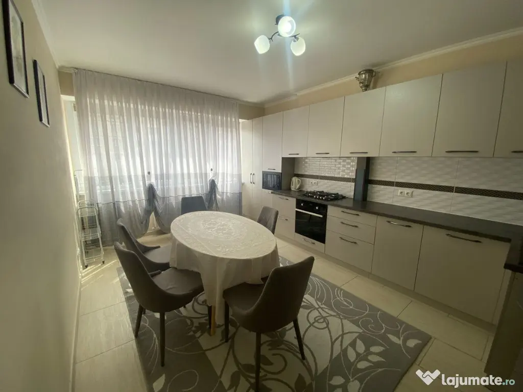 Va oferim spre inchiriere un apartament cu 2 camere, situat la etajul parterul unui bloc cu 5 etaje, cu o suprafata utila de 54mp, complet mobilat si utilat, in apropiere de multiple mijloace de transport, magazine, farmacii, in spatele liceului teoretic Elf. Nu se accepta animale de companie sau fumatul in apartament iar garantia este contravaloarea unei chirii. Confort: 1 Tip imobil: Bloc de apartamente
