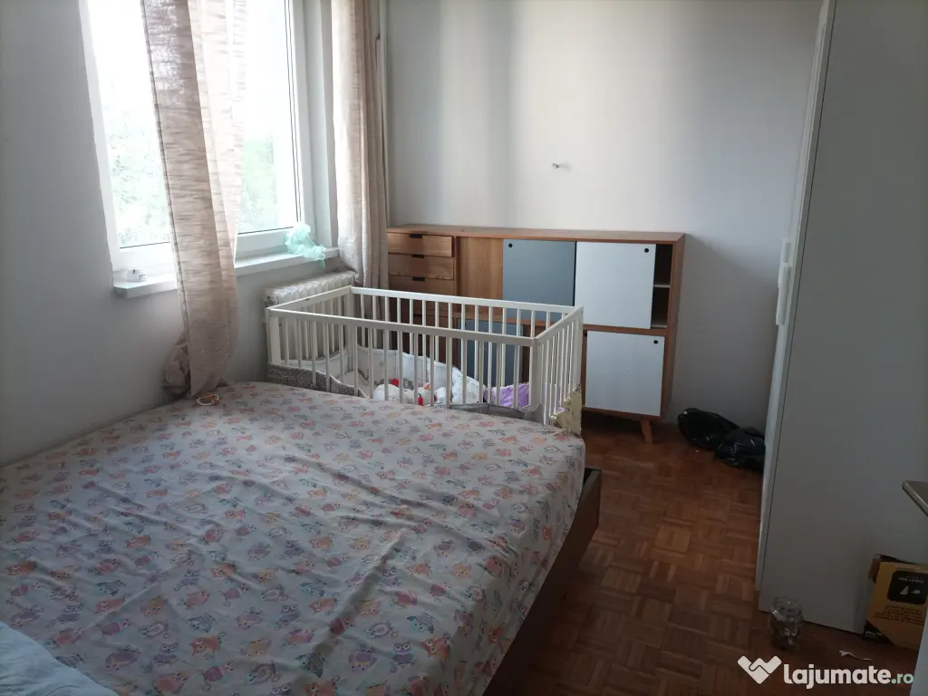 Inchiriez apartament cu 4 camere, 2 bai, loc de luat masa, bucatarie si hol in cartierul Rogerius aproape de piata, parc, magazine, statii, scoli, gradinite etc. Apartamentul este situat la etajul 3/4