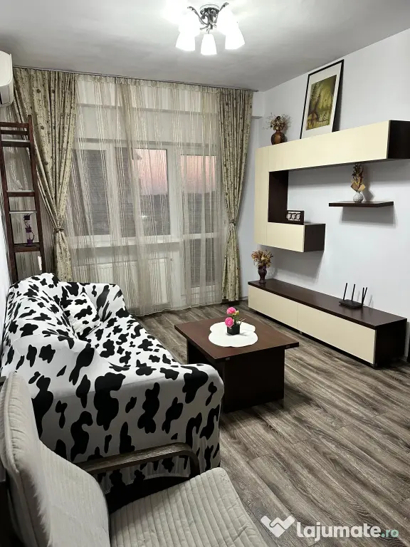 Închiriez apartament etaj 4 din 7, centrala proprie, parcare inclusa , mobilat și echipat , debara, balcon inchis + balcon deschis .