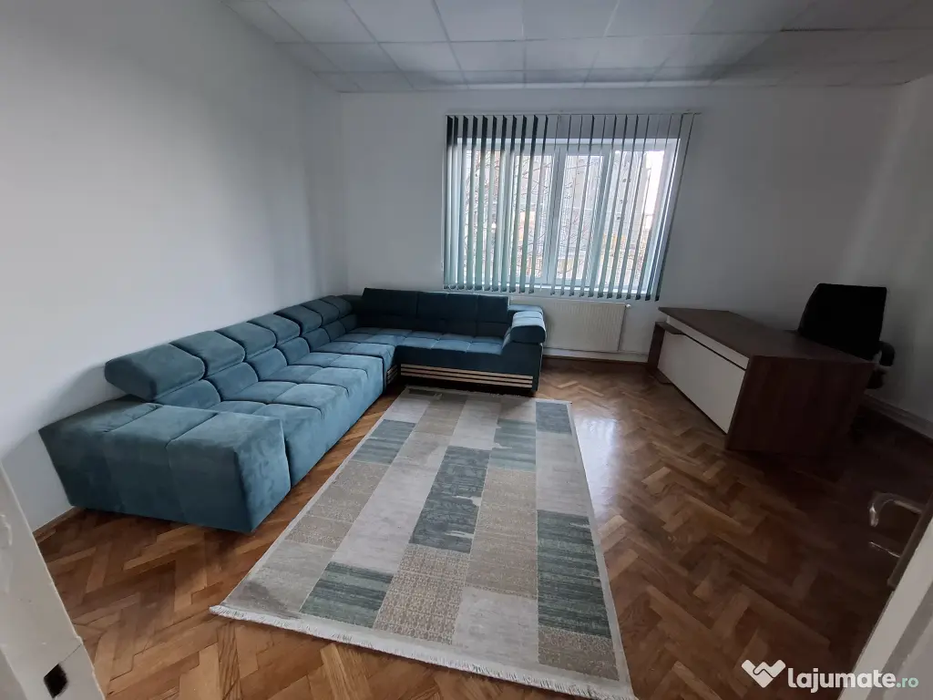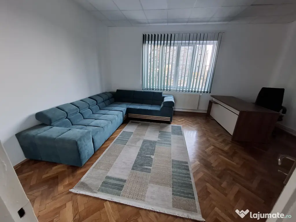 P.F. Inchiriez apartament cu 2 camere partial mobilat cu suprafaţa de 86 mp, bucătărie, 2 băi, hol, balcon, situat la etajul 1, plus o boxa la subsol de 11 mp pentru depozitare/arhivare. Apartamentul eset pretabil pentru activitate de birou (notar, avocat, executor, expert, arhitect, etc.) .