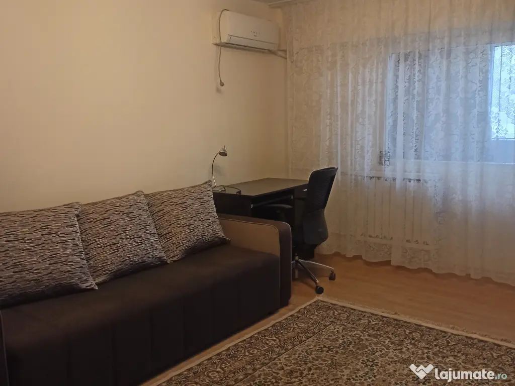 Închiriez garsonieră Crângași, confort 1, suprafață 35 mp, etaj 6/10, lângă secția 20 de Poliție/biserică, utilată, are geamuri termopan noi. Este situată într-o zonă accesibilă la 3 min metrou/tramvai/piață/supermarket. Dispune de canapea pentru 3 persoane, extensibilă, spații de depozitare generoase, dessing/debara, frigider no-frost, aragaz, apometre, mașină de spălat, TV și aer condiționat, balcon. Pretabilă cuplu tânăr. Este liberă, se poate închiria imediat. Chirie 350 euro/lună și garanție o lună.