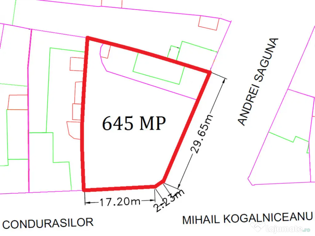Inchiriez teren zona Parneava, suprafata 645 mp, cu 2 fronturi stradale pe Andrei Saguna si Mihail Kogalniceanu, recomandat pentru spalatorie auto, parcare, utilitati: apa, gaz, curent, canalizare. Pret : 650 euro ID : RH-31260-property