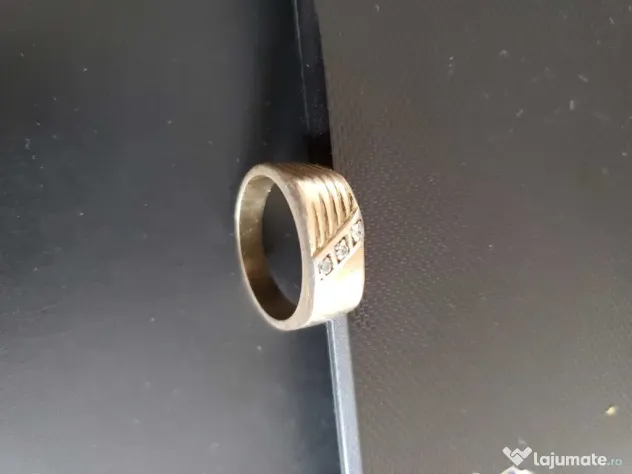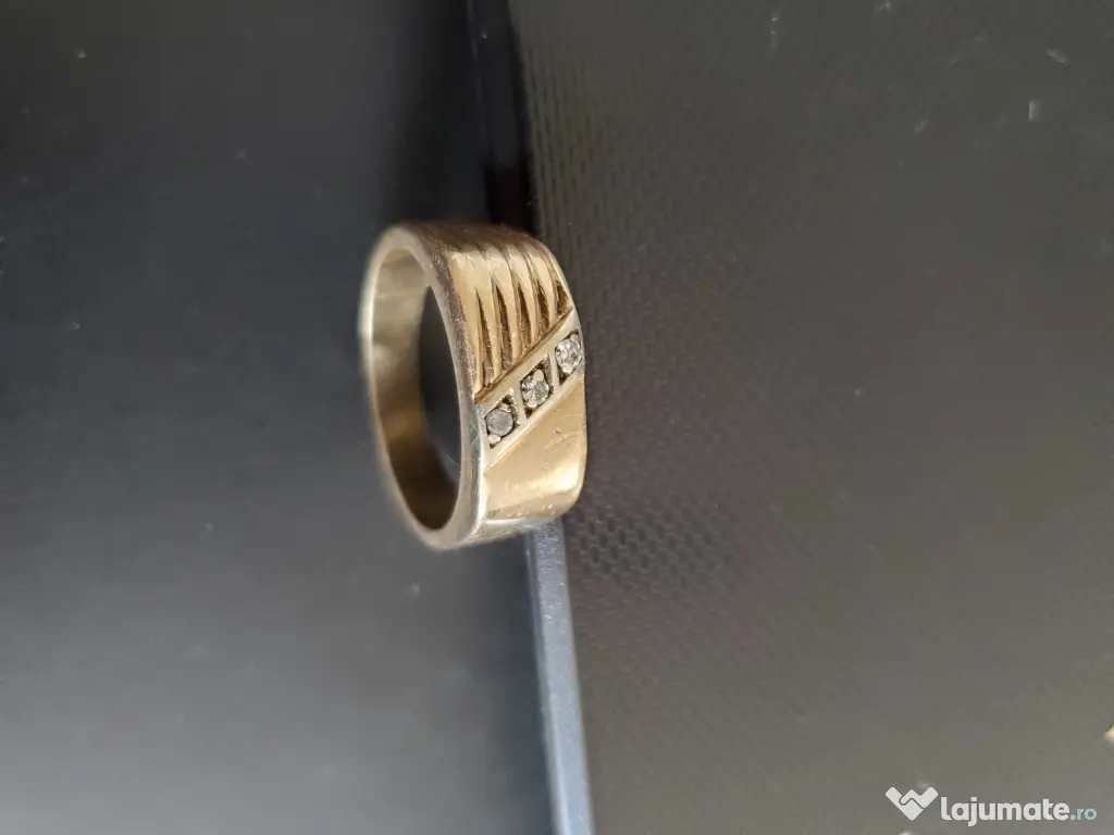 Inel superb 14 k barbatesc cu trei diamante 8.1 gr.