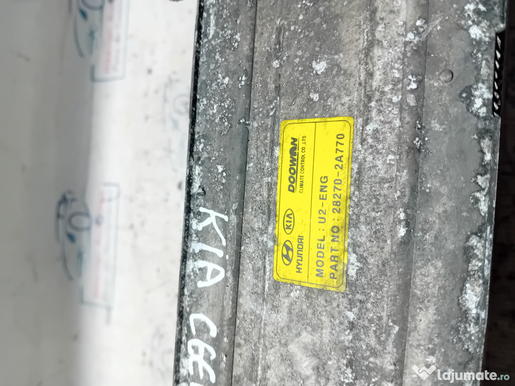 Intercooler Kia Ceed 2012. Cod(uri): 282702A770. Piesele comercializate sunt originale, provenite din dezmembrari. Dispunem de o gama larga de piese multimarca. Piesele sunt verificate inainte de a fi puse spre vanzare. In caz de neconformitate piesa se poate returna. Va rugam sa verificati disponibilitatea pieselor telefonic. Trimitem in tara prin curier.