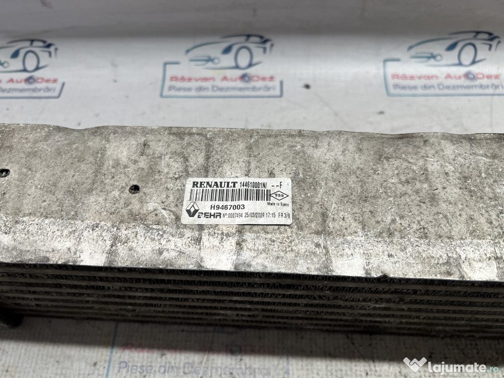 Intercooler Renault Laguna (cod motor: ) 2009. Cod(uri): 144610001N. Piesele comercializate sunt originale, provenite din dezmembrari. Dispunem de o gama larga de piese multimarca. Piesele sunt verificate inainte de a fi puse spre vanzare. In caz de neconformitate piesa se poate returna. Va rugam sa verificati disponibilitatea pieselor telefonic. Trimitem in tara prin curier.