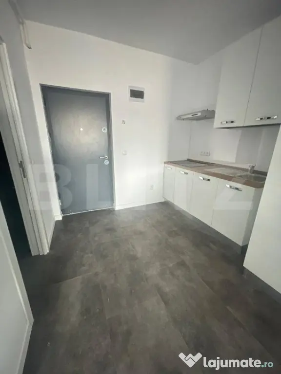 Apartamentul este complet finisat și la cheie, având un dormitor, baie, bucătărie deschisă și living. Beneficiază de o parcare exterioară inclusă în preț, facilitând astfel accesul ușor și comod. Situat într-o zonă cu acces rapid la Aeroportul Internațional și la principalele puncte de interes ale orașului, acest apartament reprezintă o oportunitate excelentă pentru cei care doresc să investească într-o locație strategică.