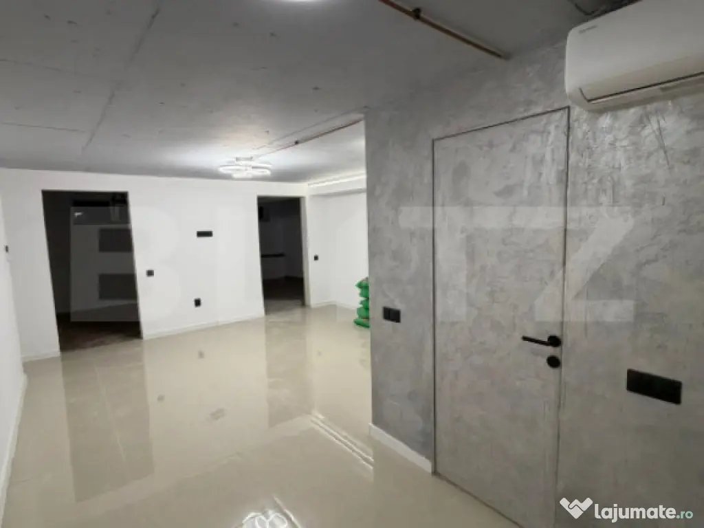 Se oferă spre vânzare un spațiu cu suprafața totală de 83 mp, compartimentat eficient în două unități independente, una de 45 mp și cealaltă de 38 mp. Proprietatea este înregistrată în acte ca spațiu comercial, fiind potrivită atât pentru activități comerciale, cât și pentru investiție. Imobilul este situat la demisolul unei clădiri cu regim de înălțime P+4, beneficiind de intrări separate pentru fiecare unitate, ceea ce asigură autonomie și flexibilitate în utilizare. Finisajele sunt moderne, proprietatea fiind pregătită pentru utilizare imediată. Localizarea este avantajoasă, în Apahida, în imediata apropiere a magazinului Penny Market, cu acces facil la tot ce oferă zona și vizibilitate bună. Achiziția se poate realiza exclusiv cash sau pe firmă. Proprietatea reprezintă o oportunitate ideală pentru investiție, birouri, cabinete sau alte activități comerciale. Cod ofertă / ID BLITZ: P162380 Id intern: P162380 Confort: 1 Tip imobil: Bloc de apartamente Număr Băi: 2