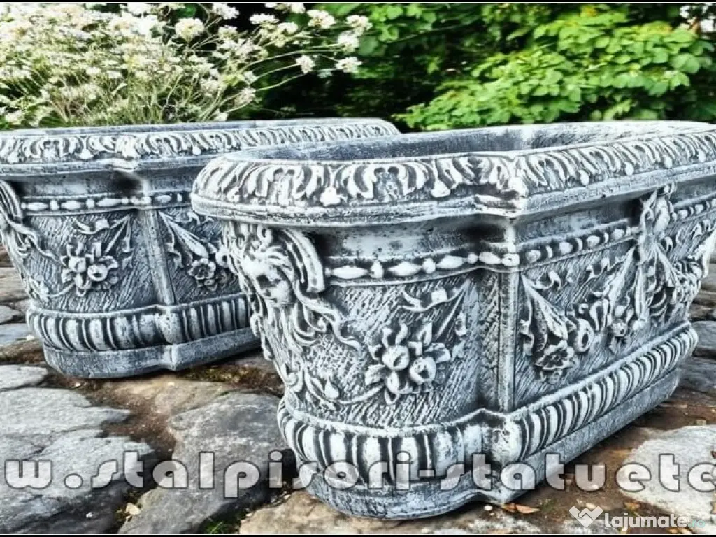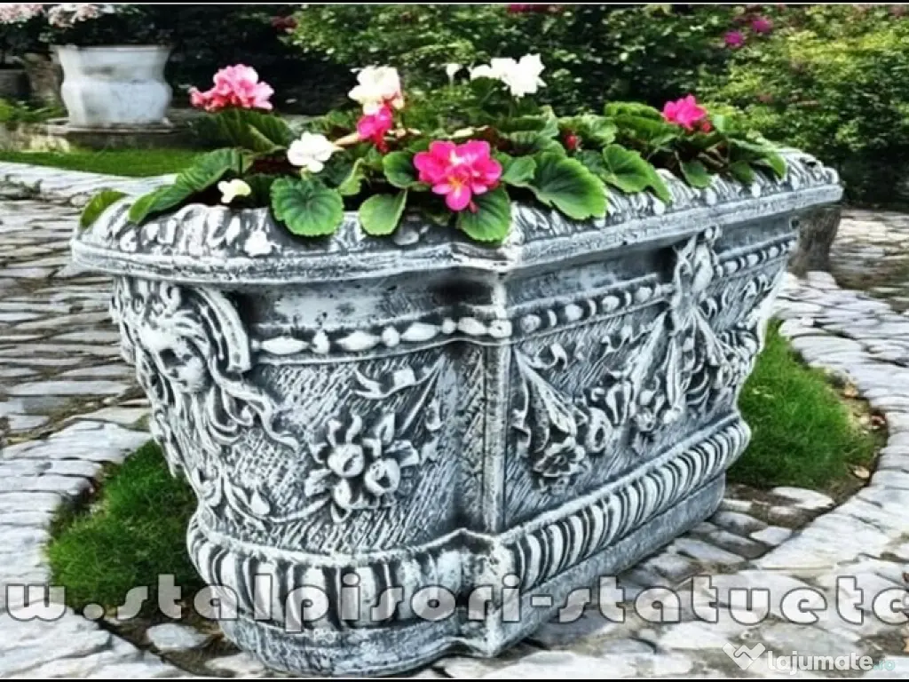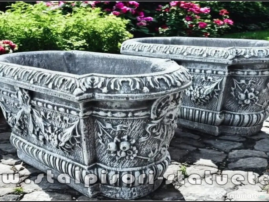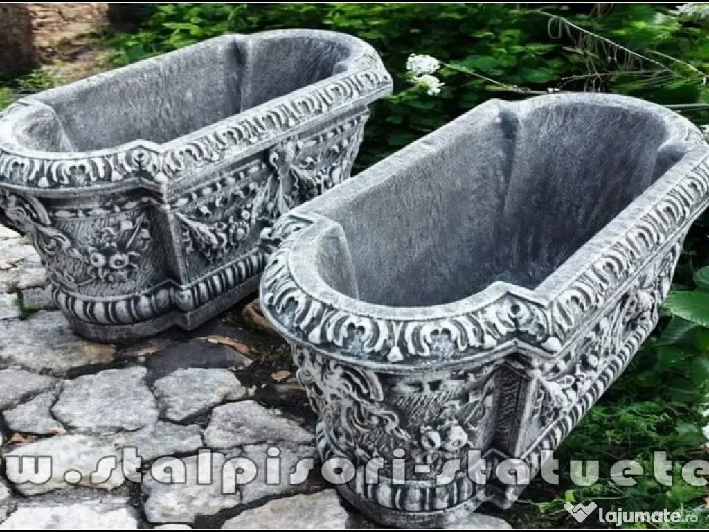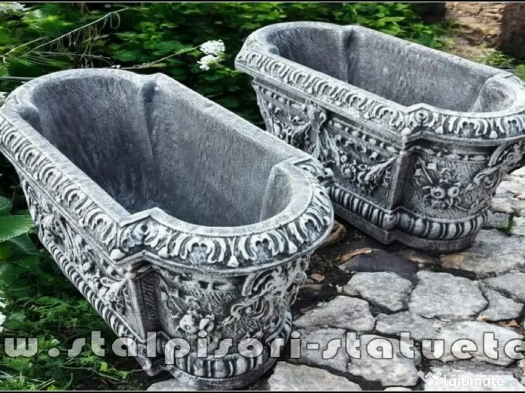 – DETALii TEHNiCE PRODUS: – Preţ: 500 lei / buc. Înălțime: 35 cm. Diametru exterior: 83×42 cm. Diametru interior: 65×28 cm. Greutate: aproximativ 85 kg. Material: Beton aditivat, ciment 52,5 R, agregate concasate.