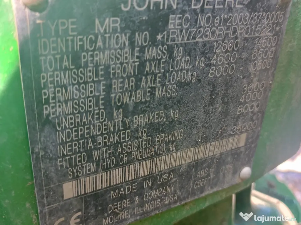 Punem la vânzare un tractor John Deere 7230R, fabricat în anul 2013,