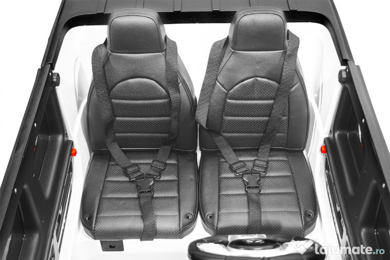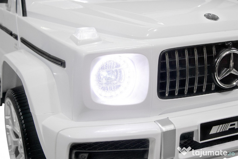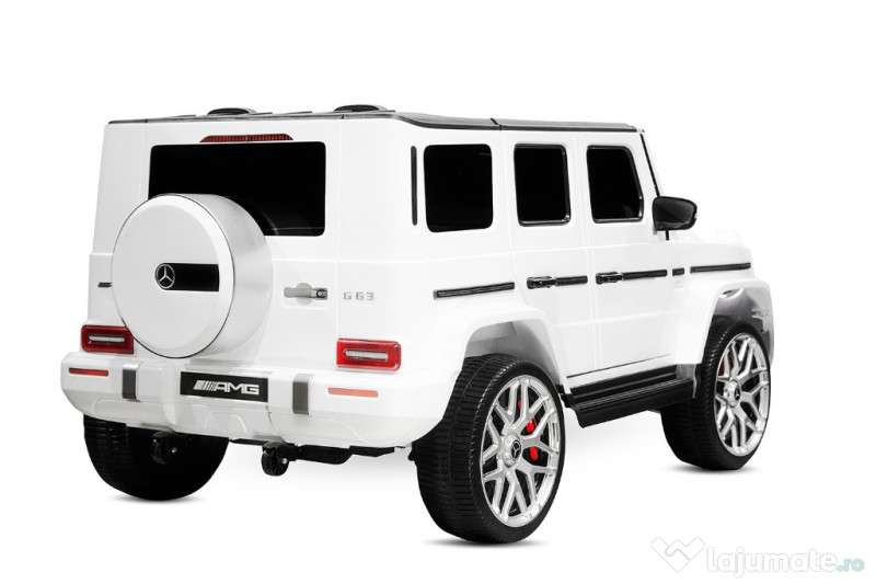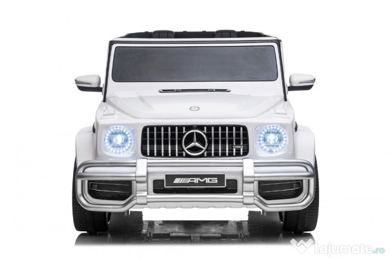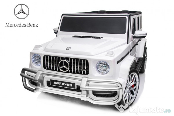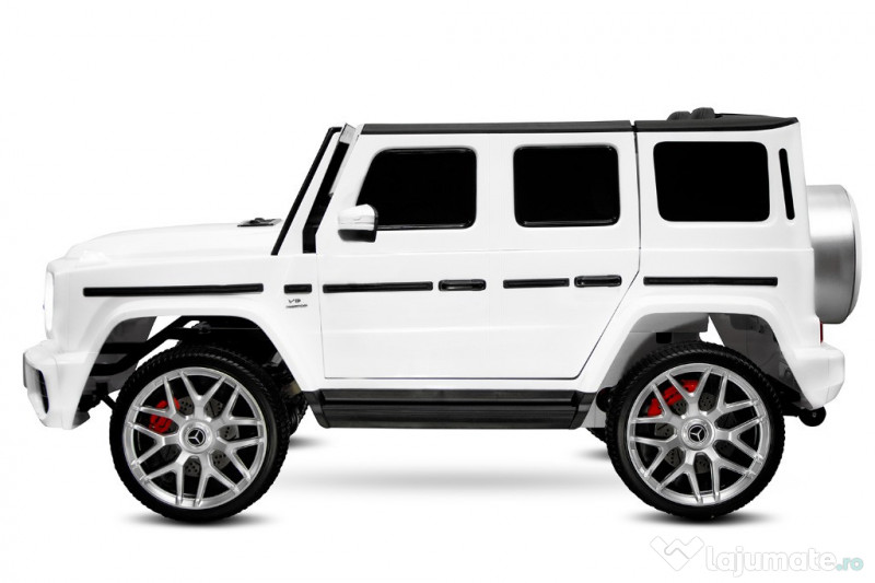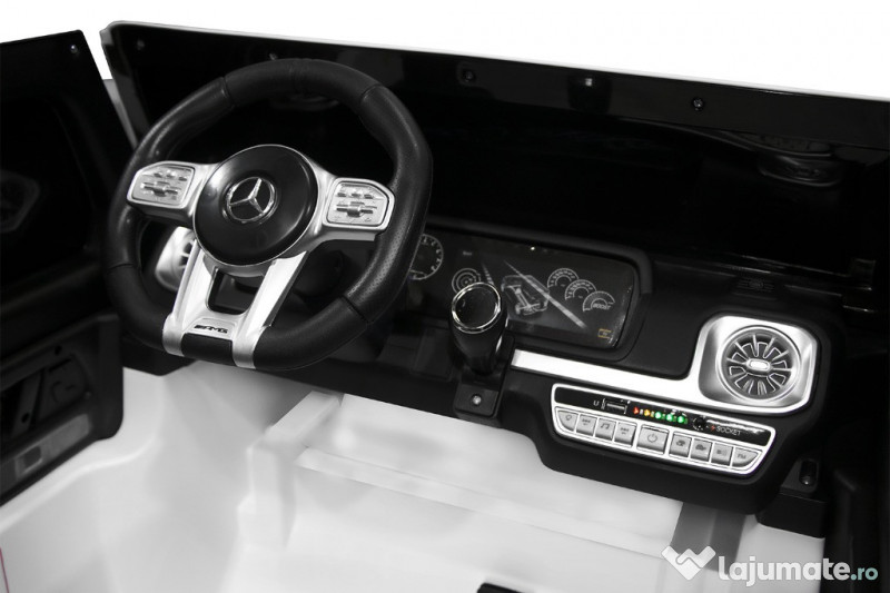 Benficiati de GARANTIE 24 Luni Transport GRATUIT Pentru comenzi si info contactati-ne O729.189.471 Dotari: Masinuta Mercedes G63 echipata PREMIUM 4 Motoare electrice de putere 45W Echipata cu 2 Baterie 12V-7Ah Amortizoare fata/spate Extra BULBAR pentru bara fata Echipat cu 2 usi cu deschidere, siguranta Sistem de tranctare , tip TROLER Roti MOI din cauciuc Scaun dublu TAPITAT cu piele ecologica conforbabil pentru 2 copii MANETA de schimbat directia de mers inainte/inapoi Pornire LENTA pentru confortul copilului Faruri si Stop-rui cu LED Pornire/Oprire din CHEIE Music player echiapt cu RADIO, port USB si Bluetooth Volan multifunctional cu claxon si comenzi muzica Sunet care imita pornirea unei masini Produsul include INCARCATOR si TELECOMANDA CONTROL PARENTAL prin telecomanda de la distanta 3 nivele de viteza selectabile din telecomanda Masinuta mai poate fi ghidata manual de catre copil Volan echipat cu butoane pentru activare efecte sonore Indicator volataj baterie 2 nivele de viteza selectabile din Bordul masinutei Sistem de iluminat Centura de siguranta Greutate proprie 30 kg Greutate total admisa 80 kg Produs recomanda pentru copil 24- 96 de luni Dimensiunile produsul montat 143cm x 82cm x 64cm Puteti cumpara acest produs in maxim 6 rate, fara dobanda, cu CARD de cumparaturi de la banci partenere precum: Star BT / Raiffeisen / BCR / BRD Finance / Alpha Bank /First Bank Pentru comenzi si info contactati-ne O729.189.471