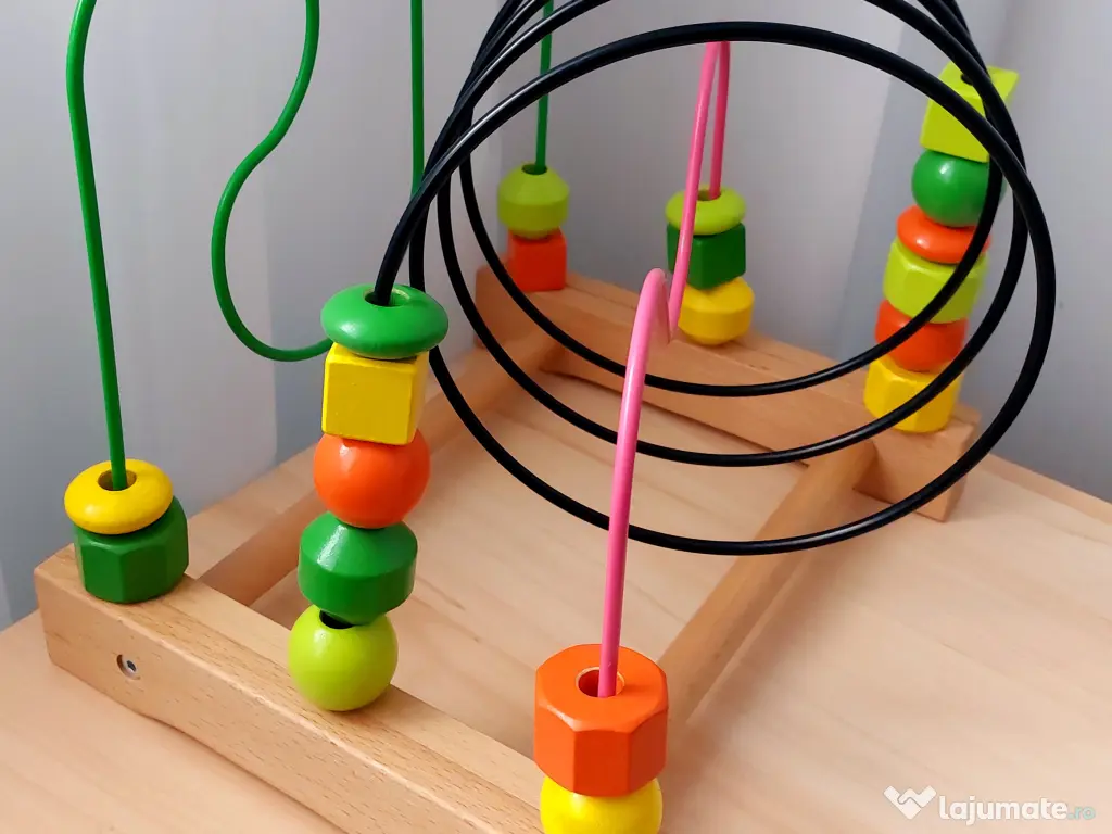 Jucarie educativa din lemn pentru motricitate copii - Labirint multicolor cu bile, de la IKEA.