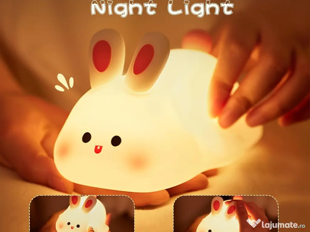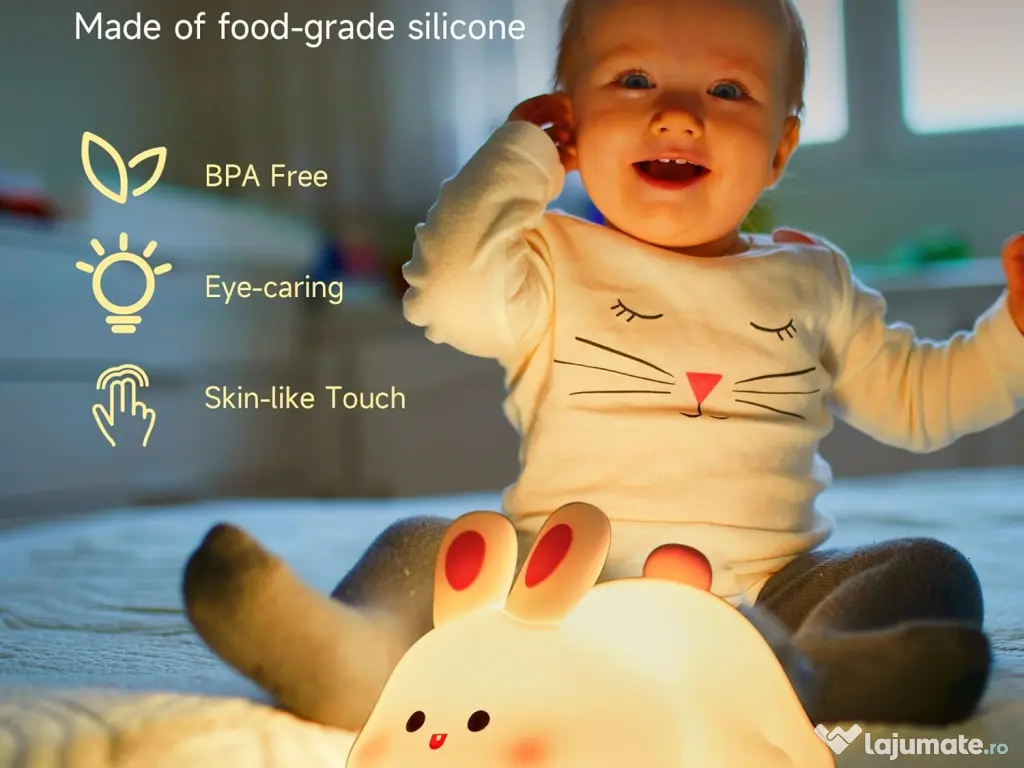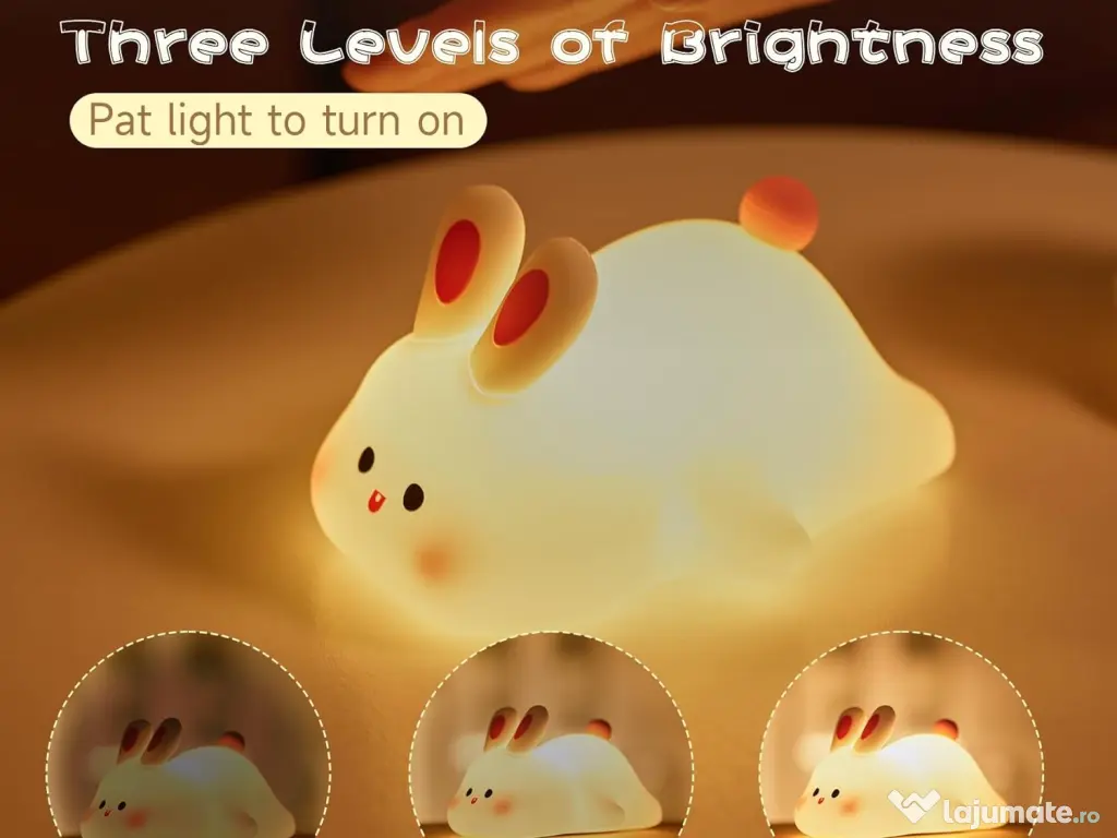 Lampă de veghe pentru copii – Iepuraș din silicon, lumină LED reglabilă