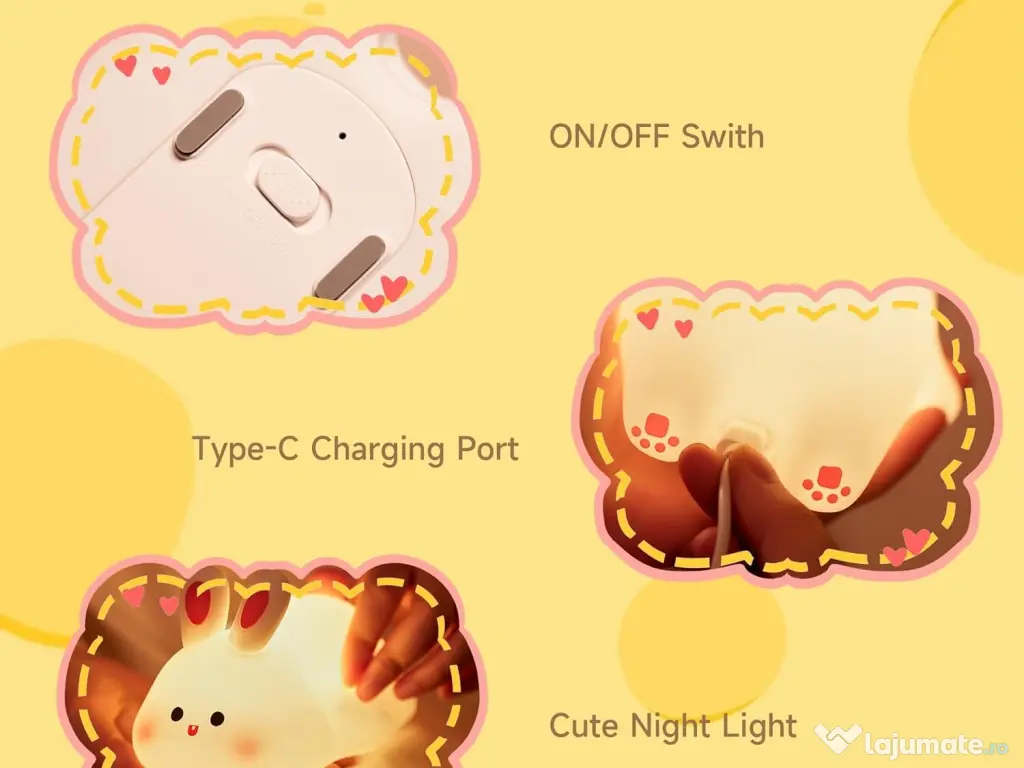 Lampa este echipată cu o baterie reîncărcabilă de 1200 mAh, oferind până la 12 ore de funcționare continuă după o încărcare completă. Lampa iepuraș va oferi copiilor o lumină reconfortantă pe timpul nopții, ajutându-i să doarmă liniștiți fără teama de întuneric.