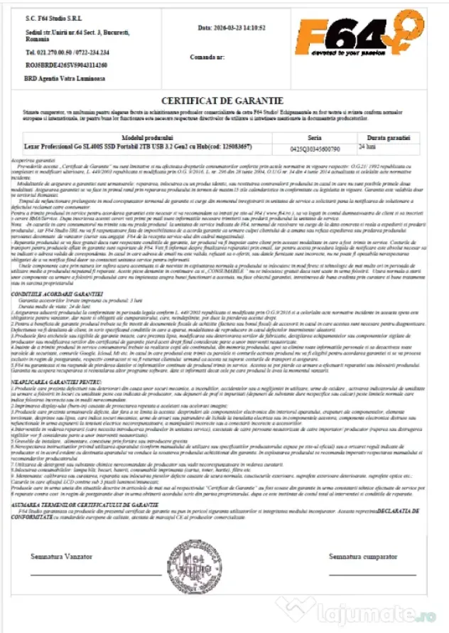 A fost achizitionat in 20.03.2026 (vezi factura in sectiunea de imagini), la pretul de 1.400 RON (acum costa peste 1.700 RON pe site-urile de specialitate).