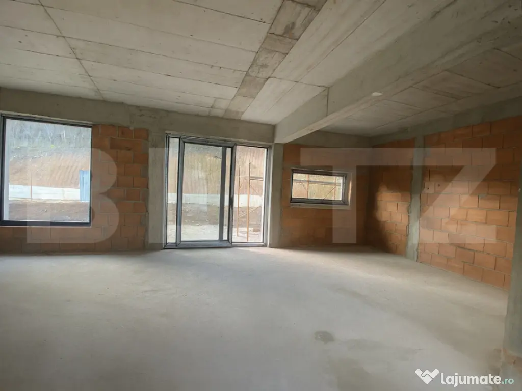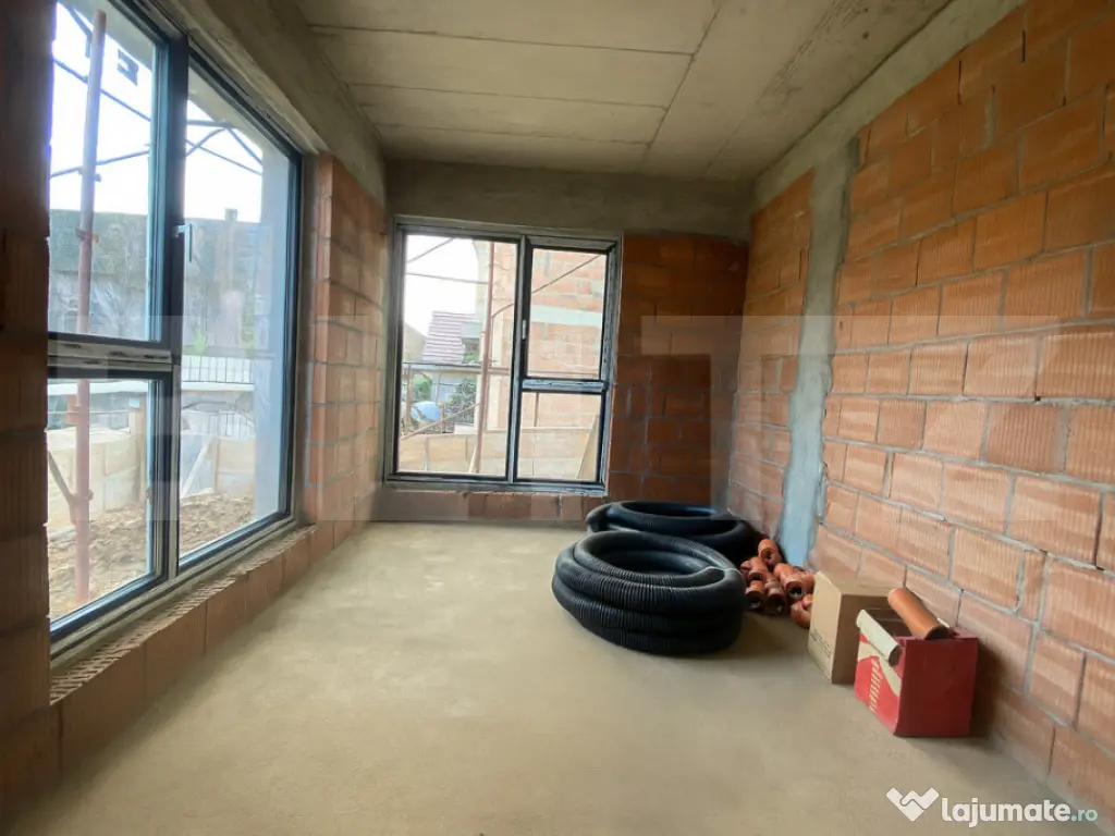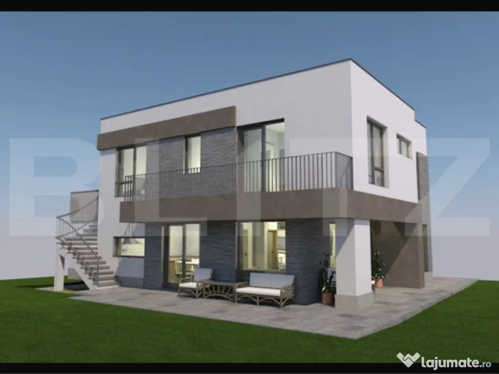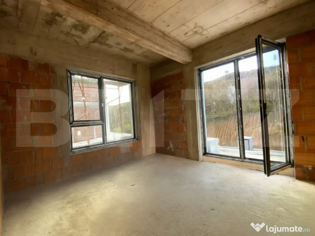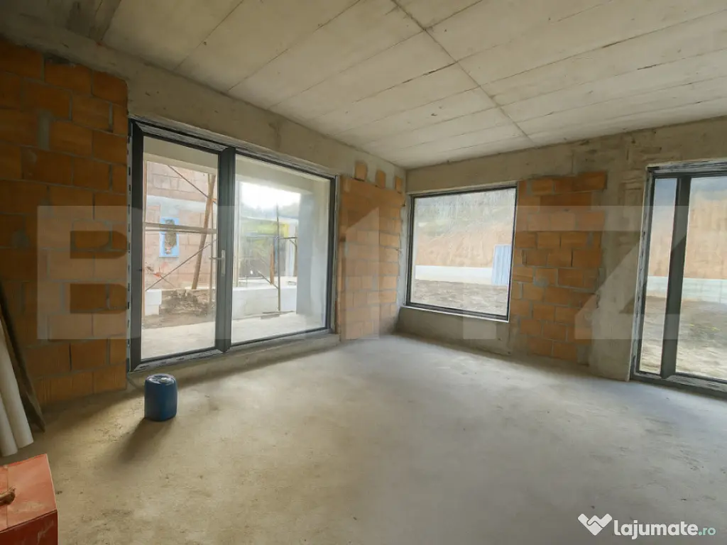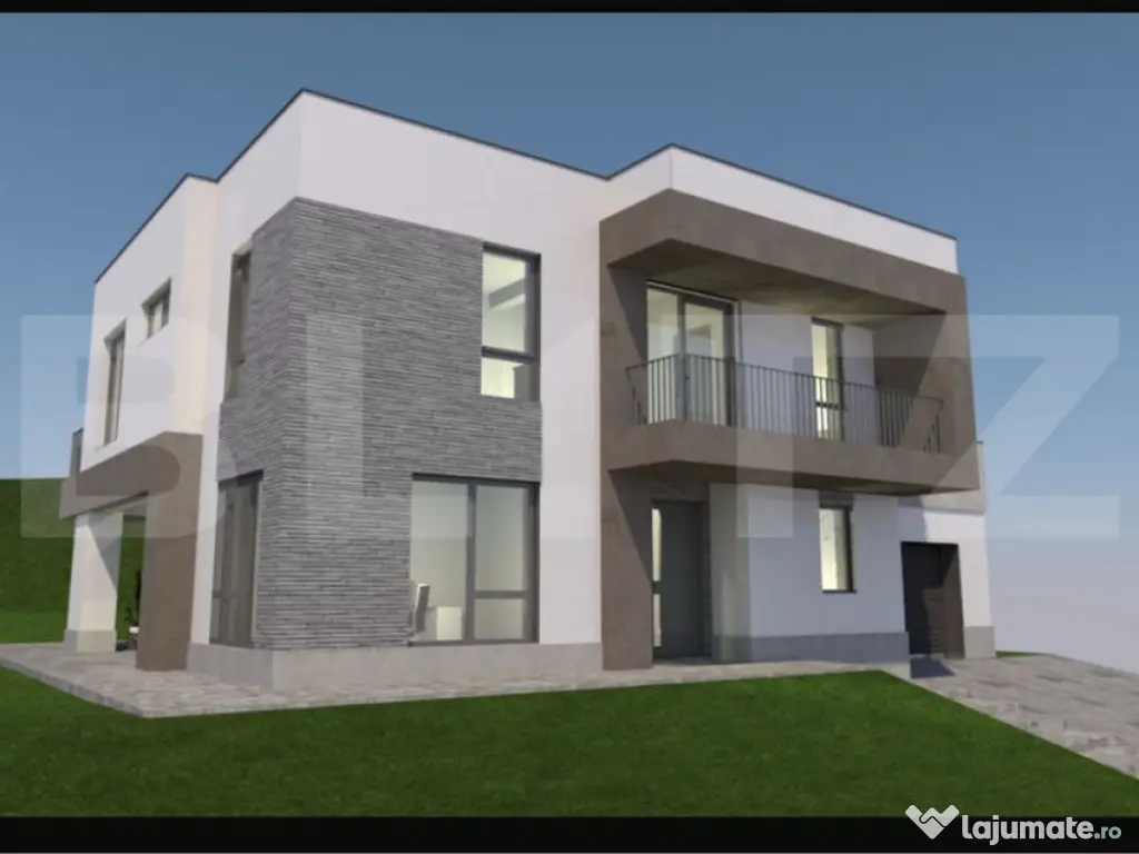 Blitz vă propune spre vânzare o casă modernă, tip P+E, amplasată într-o zonă liniștită, în mijlocul naturii, dar totodată foarte aproape de oraș. Casa are o suprafață utilă de 140 mp, la care se adaugă un garaj de 22 mp integrat în construcție, amplasată pe un teren de 600 mp ce permite amenajarea unei grădini, terase sau a unui spațiu de relaxare. Compartimentare: -Parter: living spațios, bucătărie separată, cameră multifuncțională (birou/dormitor/hobby room), baie, hol și debara. -Etaj: 3 dormitoare, fiecare cu baie proprie, 2 dressinguri, hol și 2 terase ideale pentru relaxare. BONUS: Deasupra garajului se va amenaja o terasă spațioasă, cu acces printr-o scară exterioară, perfectă pentru petrecerea timpului în aer liber și admirarea priveliștii. Stadiu și dotări: -Se predă semifinisată -Încălzire în pardoseală pe ambele niveluri -Instalații electrice și sanitare trase pe poziții -Tâmplărie tripan cu 7 camere, pentru izolare termică și fonică superioară -Ușă de intrare montată -Izolație exterioară cu polistiren de 15 cm, densitate 100 -Hidroizolație la fundație, pentru protecție împotriva umidității Exterior: -Panouri solare pentru eficiență energetică -Pompă de căldură, soluție modernă și economică pentru confort termic -Teren de 600 mp, ideal pentru amenajări personalizate Această locuință îmbină perfect calitatea construcției cu funcționalitatea modernă și oferă liniștea naturii la doar câteva minute de oraș. Vă invităm la vizionare pentru a descoperi personal această proprietate deosebită! Cod ofertă / ID BLITZ: P157437 Id intern: P157437 Număr niveluri imobil: 1 Număr Băi: 4 Curent Apă Canalizare Gaz