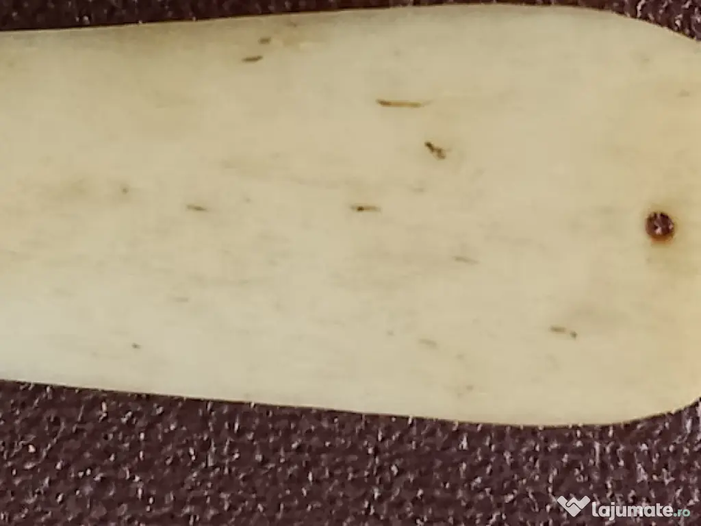 · Design: Mânerul prezintă incizii geometrice și motive solare tradiționale realizate prin sculptură.