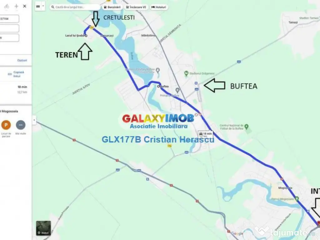 Oferta comision 0. Oferta Exclusiva. DE VANZARE TEREN PENTRU CASA SUPRAFATA 400 MP CREVEDIA SAMURCASI ZONA PARC SAMURCASI (VEZI HARTA DIN ANUNT) Sunt 5 loturi cu deschidere la strada asfaltata . Disponibile doar 3 . Doua loturi sunt vandute Adresa este Strada Lacul lui Soaba zona Parc Samurcasi Terenul a fost curatat de vegetatia abundenta crescuta in timp In luna aprilie anul curent s-au montat 102 metri liniari de gard beton cu inaltimea de 2 metri . Astfel terenul este imprejmuit pe laterale si spate ramanand doar gardul la strada de facut Certificat de Urbanism disponibil Se ofera in pret si Studiu Geotehnic ! Informatii eficienta energetica: