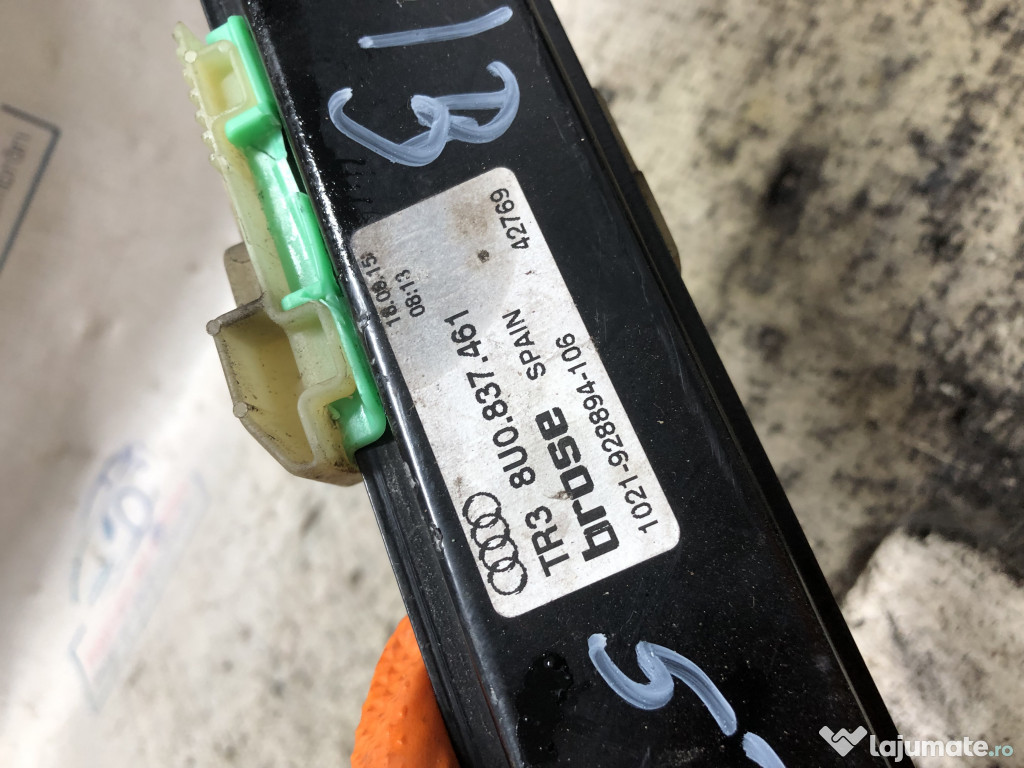 Macara geam stanga fata Audi Q3 2013. Cod(uri): 8U0837461. Piesele comercializate sunt originale, provenite din dezmembrari. Dispunem de o gama larga de piese multimarca. Piesele sunt verificate inainte de a fi puse spre vanzare. In caz de neconformitate piesa se poate returna. Va rugam sa verificati disponibilitatea pieselor telefonic. Trimitem in tara prin curier. Marcă: Audi Producător: Audi