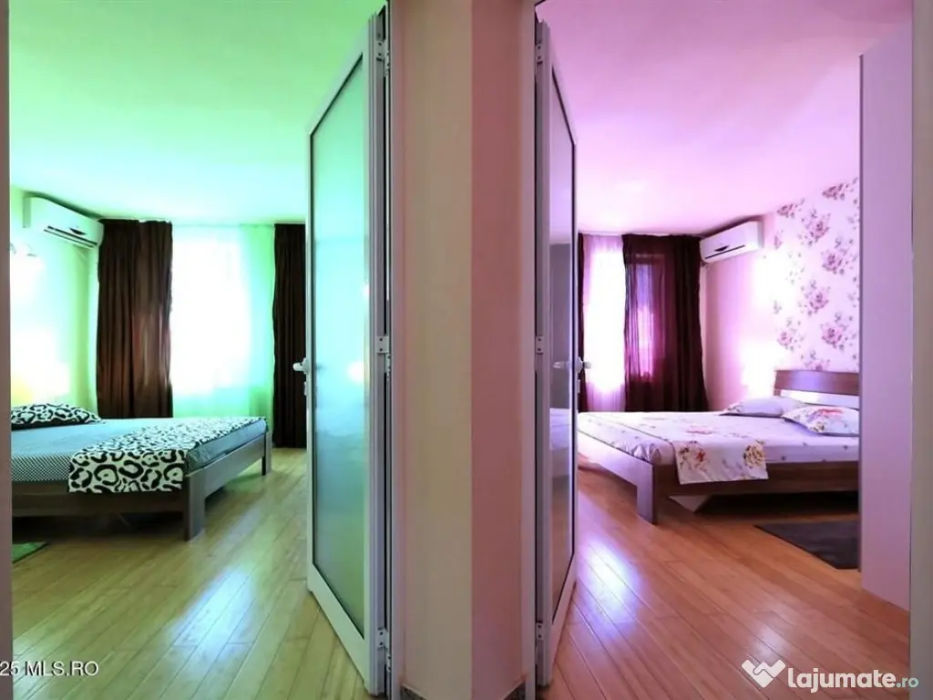 MAMAIA NORD - SCOICA LAND, CASA DE VACANTA LA MARE, P+1E+TERASA! Locatie exclusivista, la doi pasi de plaja si Phoenicia Resort, chiar vizavi de Scoica Land. Vila tip duplex P+1E+Terasa circulabila, constructie din BCA, edificata in anul 2006, cu teren de 153 mp, amprenta la sol de 66 mp si 90 mp utili. Complex privat de doar 9 vile, cu parcare in fata, cu circuit inchis si cu potential turistic foarte ridicat. Interior mobilat utilat complet, gata de inchiriat, compartimentat modern, living spatios de 26 mp cu bucatarie si baie la parter, 2 dormitoare mari cu acces la balcon si bai proprii, plus terasa generoasa de 40 mp la etaj. Număr niveluri imobil: 2 Număr Băi: 3 Posibilitate parcare: Nu Apă Canalizare Gaz Încălzire Climă Subsol