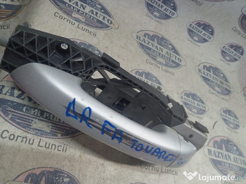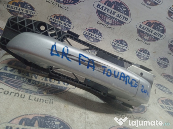 Maner exterior dreapta fata Volkswagen Touareg 2012. Piesele comercializate sunt originale, provenite din dezmembrari. Dispunem de o gama larga de piese multimarca. Piesele sunt verificate inainte de a fi puse spre vanzare. In caz de neconformitate piesa se poate returna. Va rugam sa verificati disponibilitatea pieselor telefonic. Trimitem in tara prin curier.