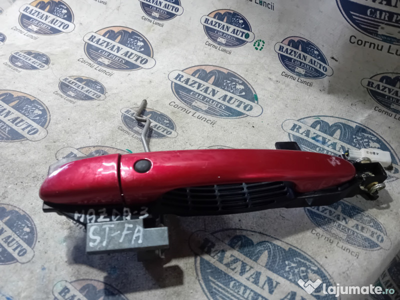 Maner exterior stanga fata Mazda 3 2015. Piesele comercializate sunt originale, provenite din dezmembrari. Dispunem de o gama larga de piese multimarca. Piesele sunt verificate inainte de a fi puse spre vanzare. In caz de neconformitate piesa se poate returna. Va rugam sa verificati disponibilitatea pieselor telefonic. Trimitem in tara prin curier.