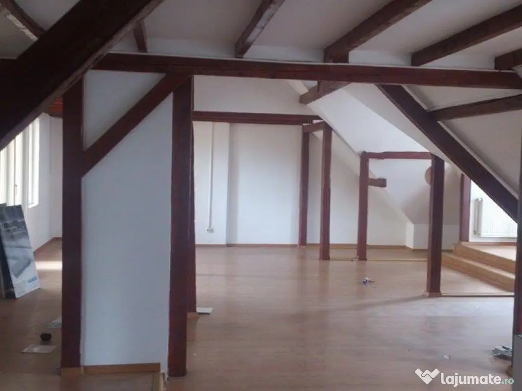 Mansarda libera, 180 mp, este ideala pentru birouri.