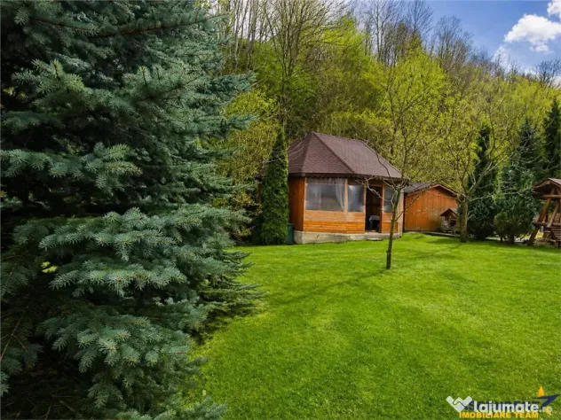 Fiecare camera beneficiaza de balcon propriu, iar centrala termica pe lemne si gaz asigura un ambient placut indiferent de anotimp. Curtea este frumos amenajata si marginita de un parau ce adauga un plus de farmec peisajului.