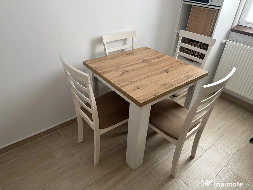 Masa si scaunele au fost achizitionate din Jysk si sunt in conditie foarte buna. Masa are ca dimensiuni 80x80 cm. Nu ofer transport.
