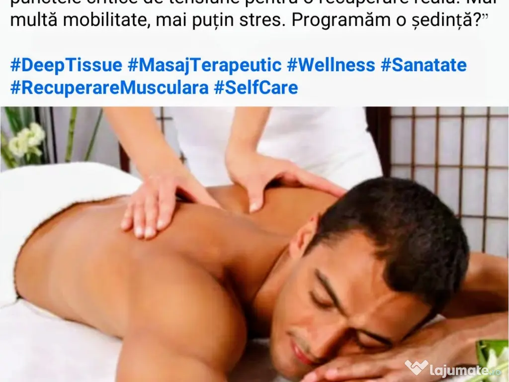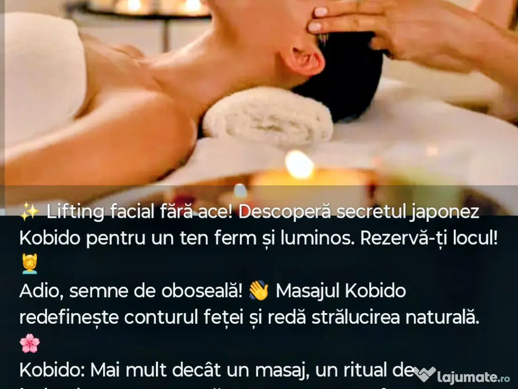 Maseuza calificata cu experiență vastă în Spania ofer servicii de masaj profesional:Masaj Kobido ,Relaxare general , Terapeutic , kinetoterapie, reflexoterapie,Deep tissue,bete de bambus, ventuze, pietre vulcanice.