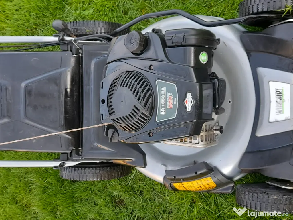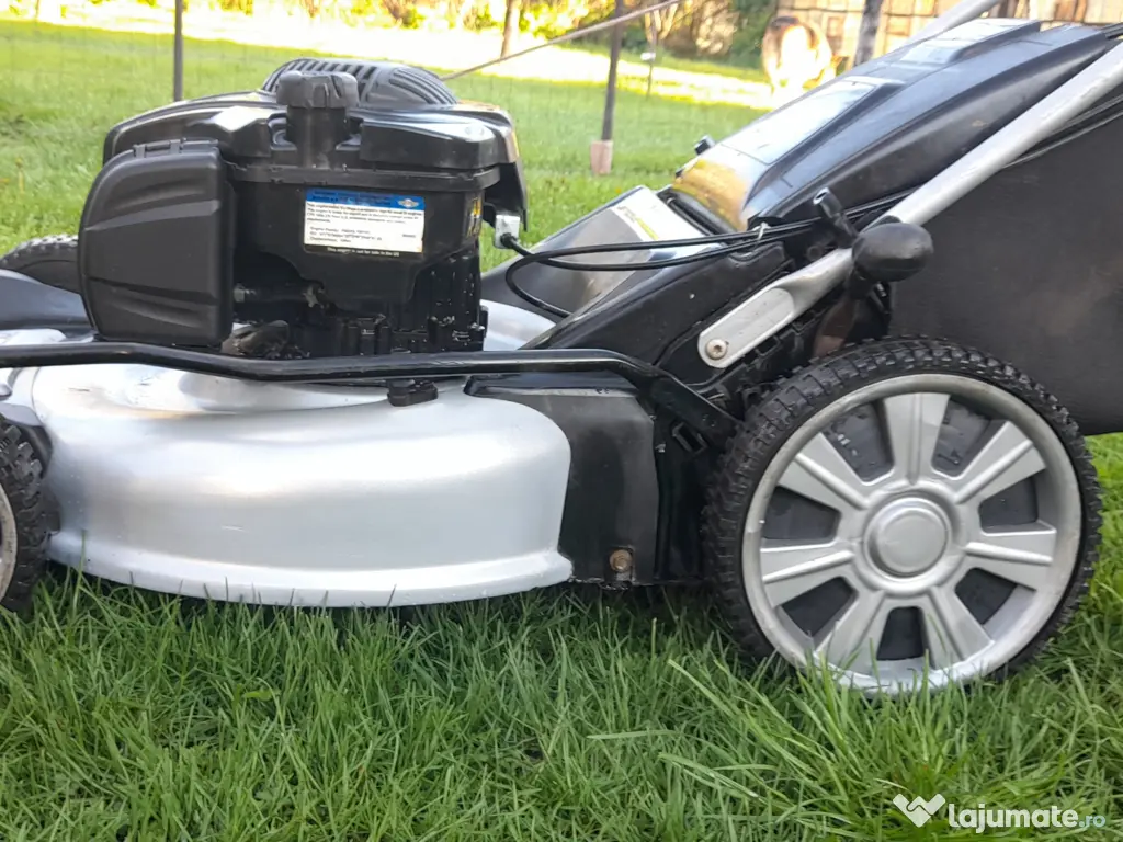 Masina mare de tuns iarba cu autopropulsie și motor puternic Brigs&Stratton. Suprafata mare de taiere 54cm. Totul funcționează perfect și arata foarte bine. Ulei schimbat si cutit ascuțit