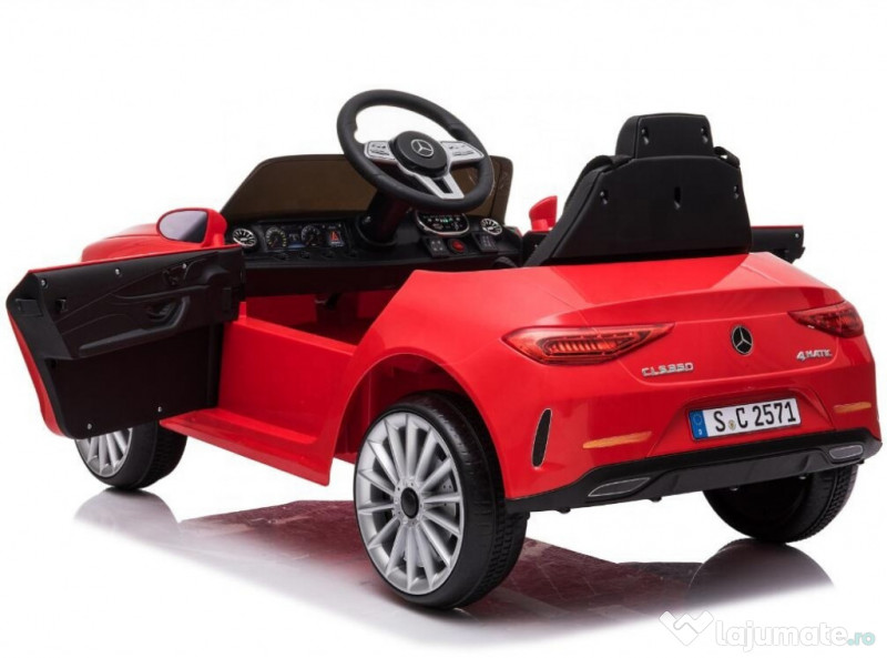 Benficiati de GARANTIE 24 Luni Transport GRATUIT Pentru comenzi si info contactati-ne O729.189.471 Dotari: Masinuta Mercedes CLS350 echipata PREMIUM SCAUN TAPITAT cu piele ecologica ROTI MOI cu cauciuc EVA Faruri cu LED Pornire/Oprire din Buton Schimbator directie de mers: inainte sau inapoi Music player echipat cu port USB si CARD minSD 2 Motoare electrice de putere 25W Echipata cu Baterie 12V-4.5Ah Pornire LENTA pentru confortul copilului Oprire LENTA pentru confortul copilului Produsul include INCARCATOR si TELECOMANDA CONTROL PARENTAL prin telecomanda de la distanta 3 nivele de viteza selectabile din telecomanda Masinuta mai poate fi ghidata manual de catre copil Volan echipat cu butoane pentru activare efecte sonore Indicator volataj baterie Sistem de iluminat Conexiune Mp3 prin cablu jack Treapta de marsarier Centura de siguranta Greutate proprie 11 kg Greutate total admisa 41 kg Produs recomanda pentru copil 2-5 ani Dimensiunile produsul montat 1040x600x500 mm Puteti cumpara acest produs in RATE, fara dobanda, cu CARD de cumparaturi de la banci partenere precum: Raiffeisen / Star BT / BCR / BRD Finance / Alpha Bank /First Bank. Pentru comenzi si info contactati-ne O729.189.471