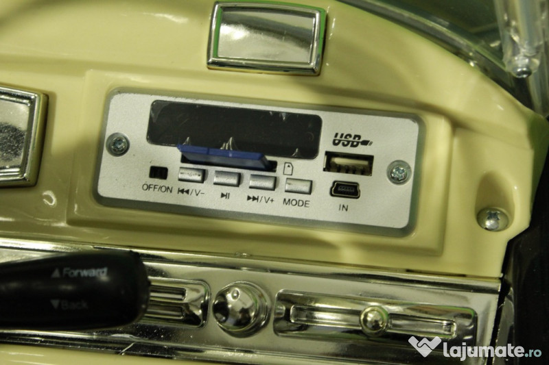 Masinuta electrica pentru copii Mercedes 300S 90W 12V Classic Scaun tapita cu piele ecologica , confortabil pentru copil Roti MOI, silentioase și confortabile Centura de sigurata Music player cu port USB, Slot CARD , port AUX Control prin telecomandă sau pedala de accelerație Amortizoare fata / spate Volan cu comenda pentru claxon Efecte de luminoase și sonore Maneta pentru schimbarea sensului de mers , înainte /inapoi Telecomanda cu control integral, inainte/ înapoi, viraj stanga/dreapta Indicator voltaj baterie Aceste este echipat cu încărcător 12V 1Ah Baterie de 12V 7Ah 2 motoare electrice de putere 45W fiecare Muzică de divertisment cu efecte sonore Volumul este reglabil din music player Compartiment depozitare spate Greutate masinuta 21,5 kg Suporta o greutate de pana la 35 Kg Vârsta recomandată 3 – 7 ani Se poate utiliza și de către copii sunt 3 ani, doar cu supraveghere adult Dimensiunile vehiculelor 1320x670x540 mm Garantie 1AN, TRANSPORT GRATUIT , LIVRARE RAPID PRODUS NOU Telefon: O729.189.471