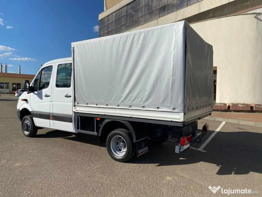 Mercedes Benz Sprinter 518 CDI, cabina dublă 7 locuri, transmisie 4X4, punte dublă, se conduce cu permis Categoria B ( maxim autorizat 3,5 Tone), motor 3000 cmc, 180 Cp, cutie manuală 6+1 viteze, oglinzi el, geamuri el, ABS, airbag, esp, aer conditionat ,Radio CD, închidere centralizată , cotieră, cîrlig de remorcare, etc.