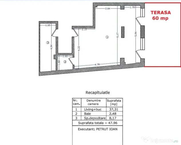 Apartamentul are 48 mp ( utili) si va fi finisat in functie de dorintele cumparatorului.