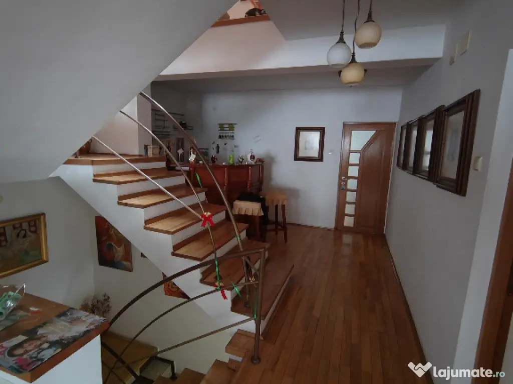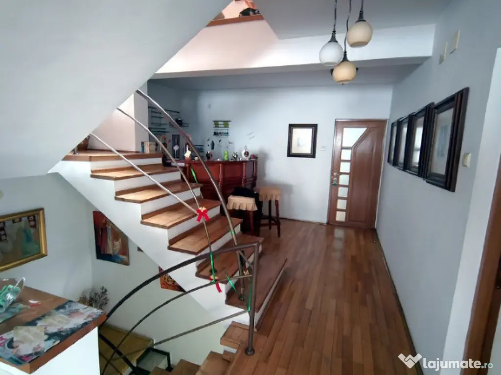 Zona Mihai Bravu imobil 8 camere disponibil pentru inchiriere. Detalii - constructie 2001, dispusa pe P+2E+M, suprafata utila 500 mp, curte libera 300 mp. Vila este compusa din 8 camere ( living, birou, 4 dormitoare - fiecare cu baie proprie, sala activitati / sport, mansarda locuibila), bucatarie, terasa, 2 balcoane, 2 garaje incalzite si cu apa curenta, spatii de depozitare, acces facil mijloace de transport.