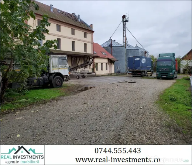 Vand moara in Ghioroc, cu teren in suprafata de 3500 mp, moara de grau ce poate procesa 30 tone/24 ore, cu cantar bascula de 60 tone, laborator de analize, magazie de faina si tarate, 3 silozuri pentru depozitare de grau, atelier mecanic, moara utilizabila imediat.