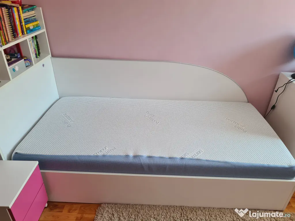 PAT cu somiera + Saltea Dormeo (1.93*0.90)) + Extensie Rafturi (inaltime 1.20)